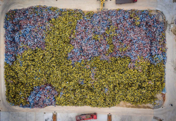 Those images are via the Guardian, which reported recently on China's "bike share graveyards." The yellow ones are from Ofo, the blue ones from newly bankrupt Bluegogo, and the ones with red tires from Mobike. Bluegogo, once valued at around $140 million, handed off its assets to startup Biker last month after declaring bankruptcy. The startup is reportedly struggling to come up with funds to pay its staff and refund users, many of whom put down deposits to use its bikes.